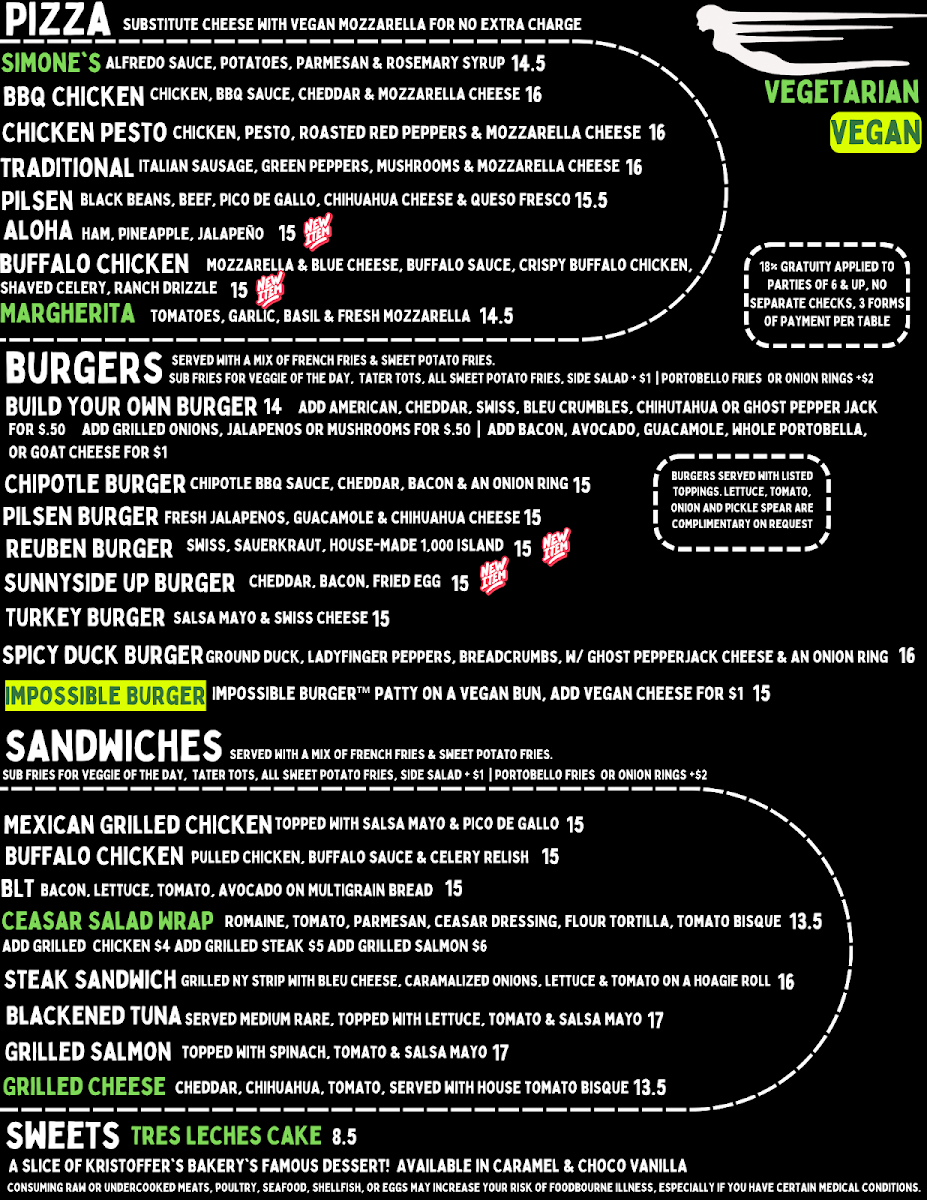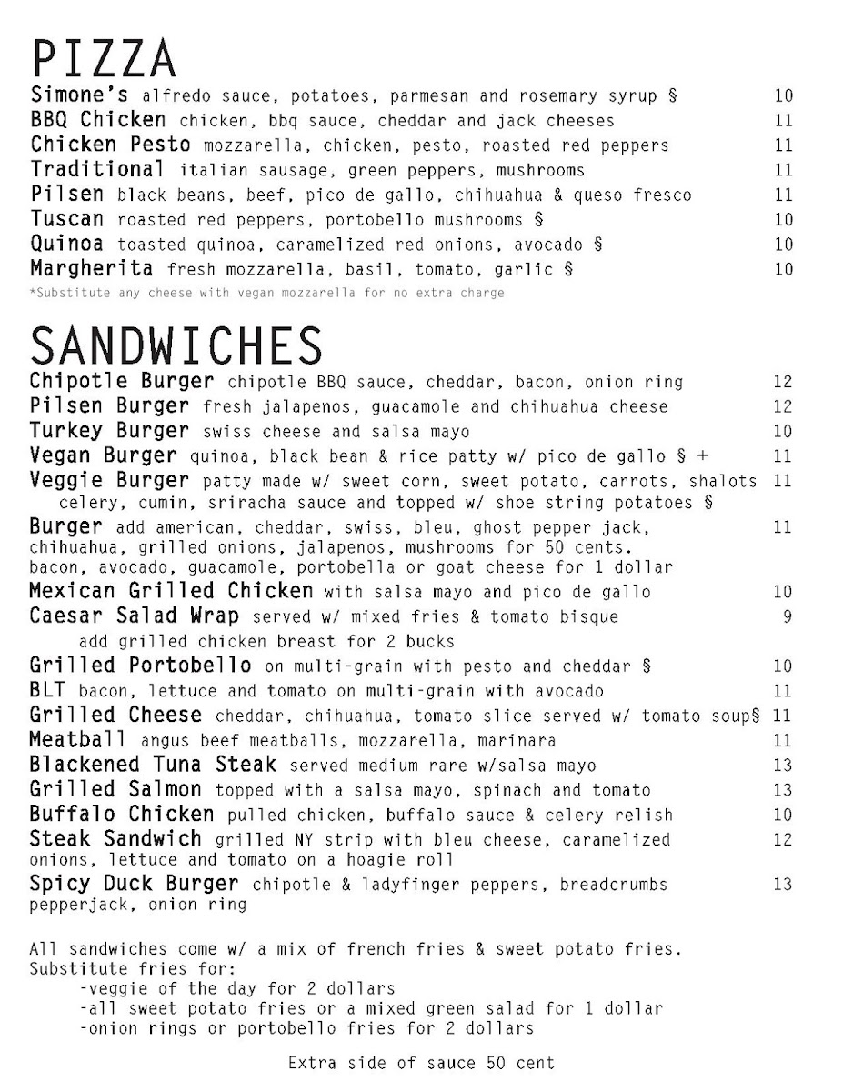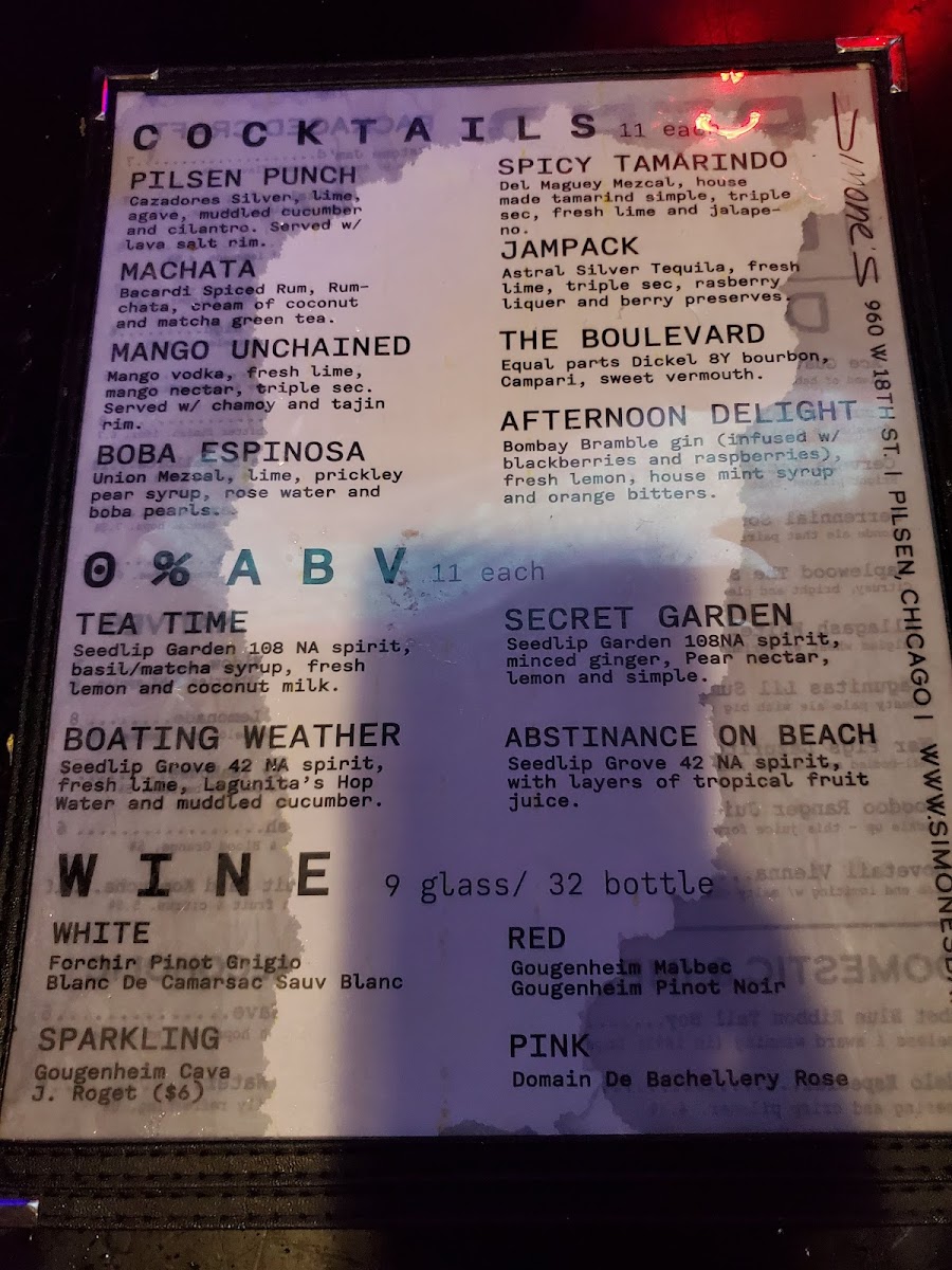 Welcome to Simone's, a vibrant gem nestled in the heart of Chicago's Pilsen district. Known for its inviting atmosphere filled with art and lively music, this spot is perfect for both casual outings and celebratory nights. The menu is a delightful array of offerings that cater to diverse tastes.